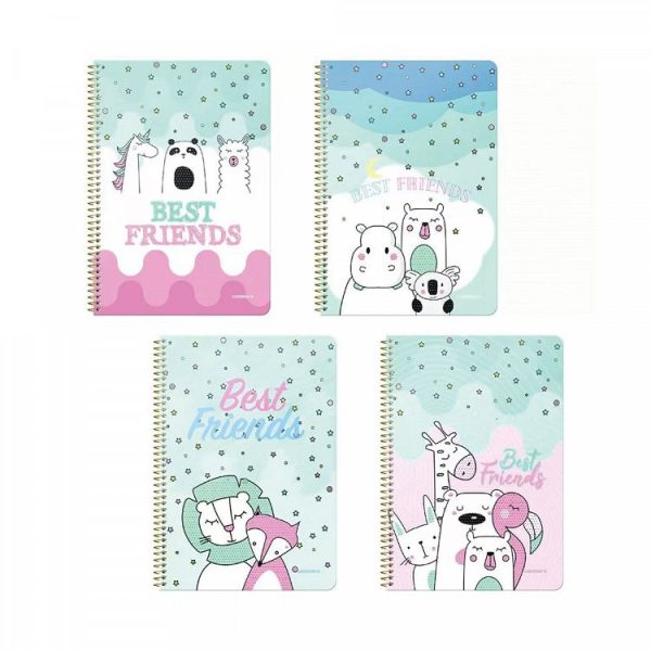BEST FRIENDS Τετράδιο Σπιράλ Wirelock B5/17Χ25 3 Θέματα 90 Φύλλα 6τμχ